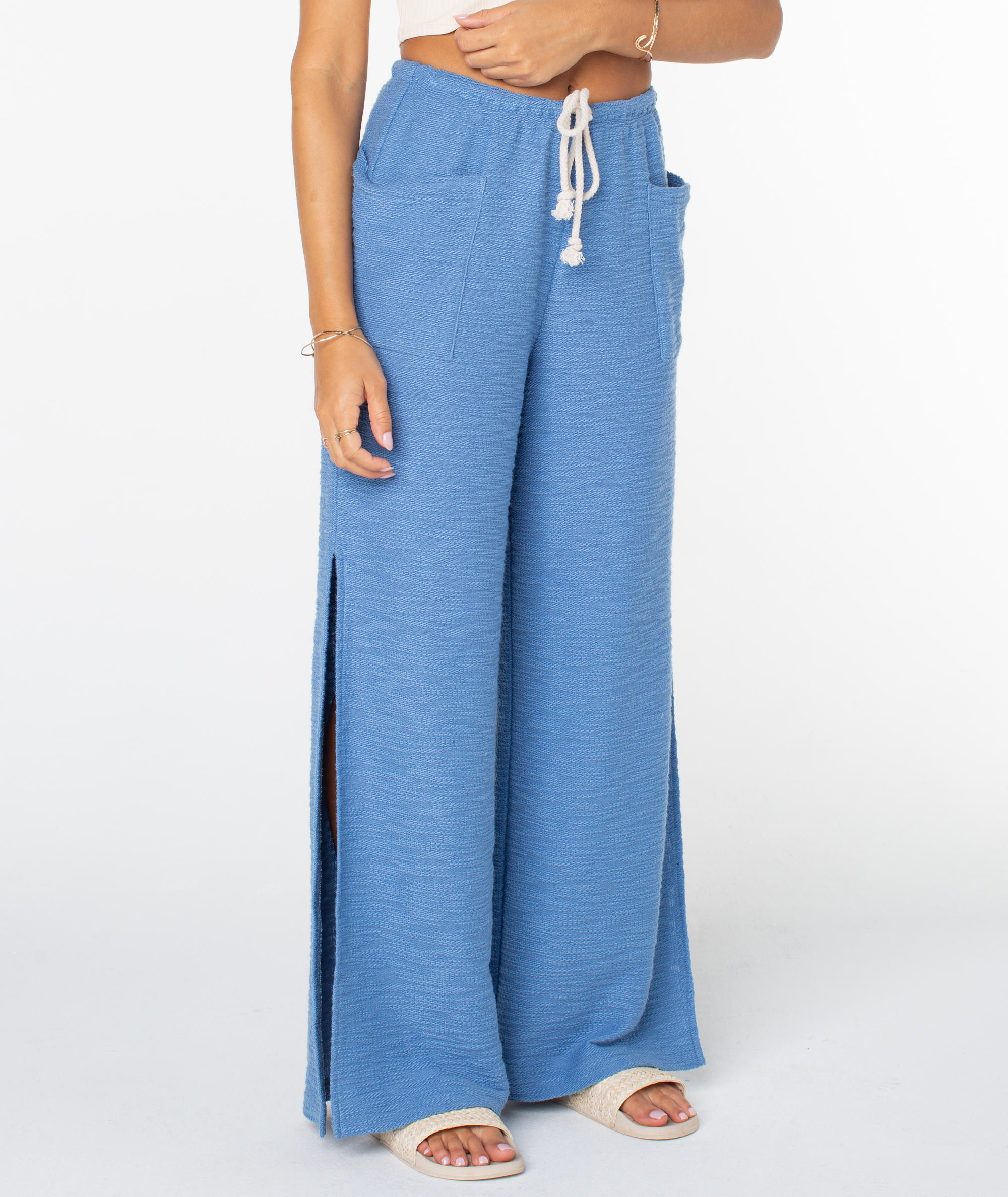 A reimagined spin on a classic silhouette, the Beach Breeze pants are an elevated wardrobe staple. Featuring a high slit and a drawstring accent, these terry pants are a fun warm-weather pick.