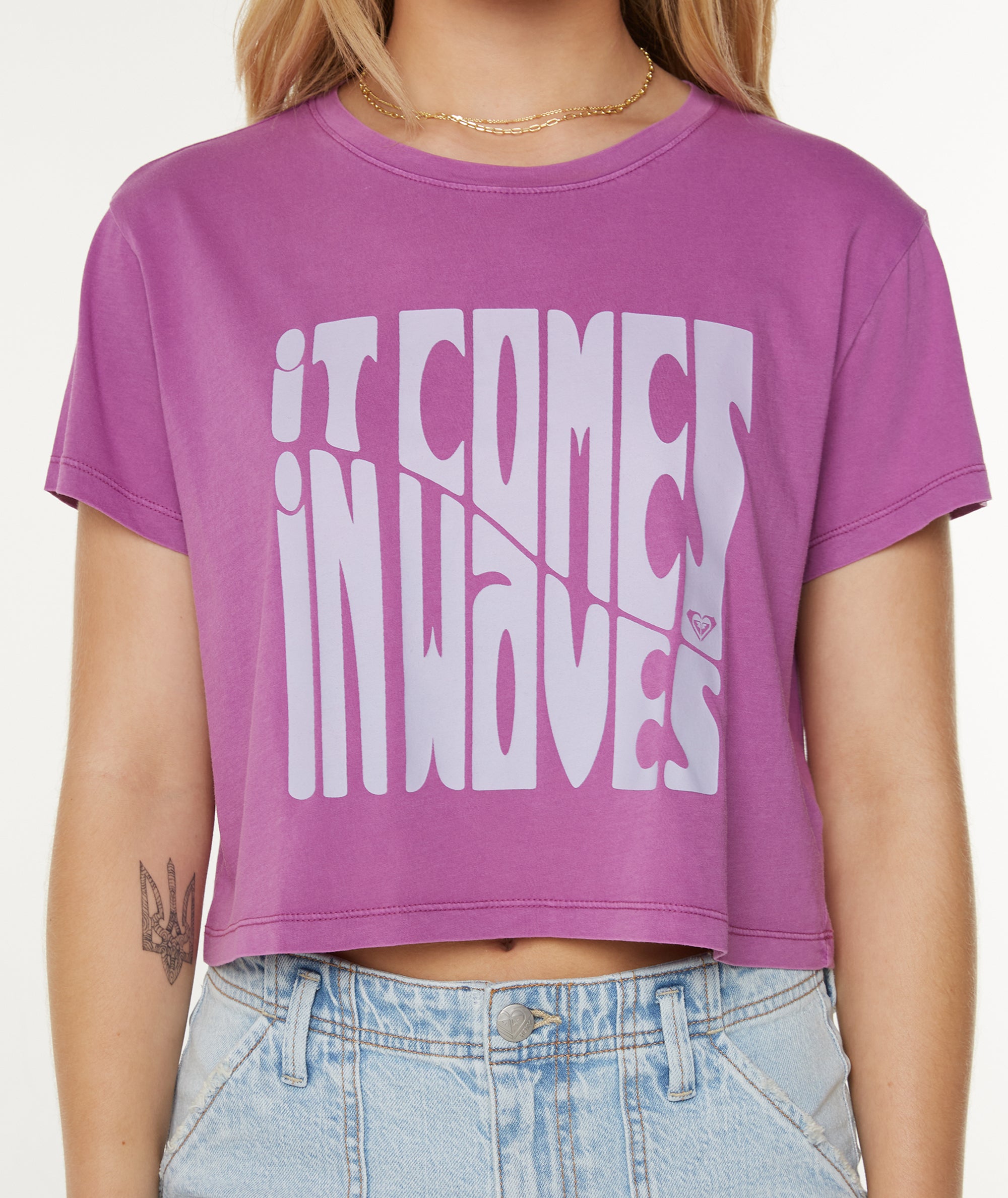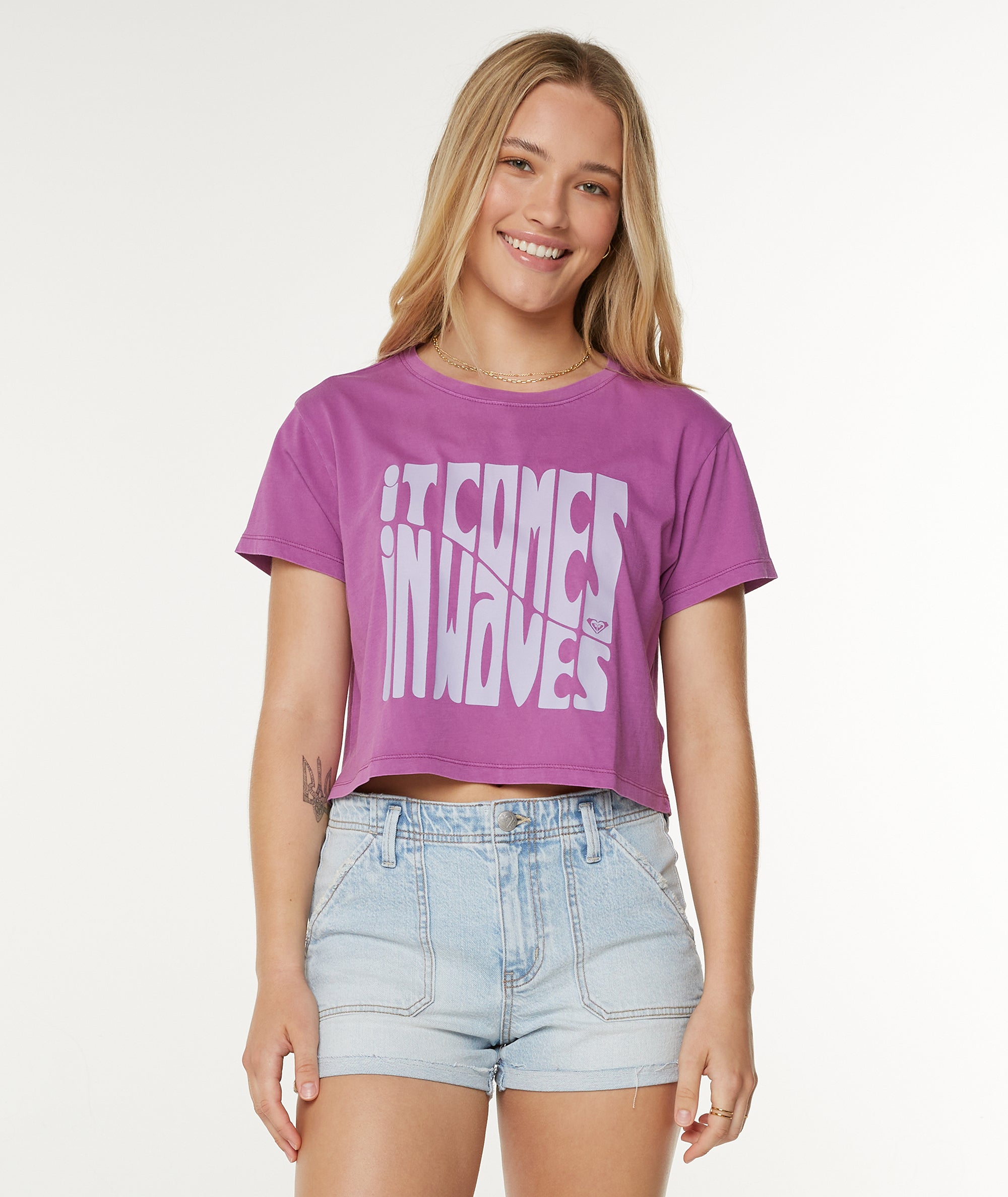 Roxy Women’s Comes In Waves Cropped Boxy Tee | Striking Purple Comes In Waves
