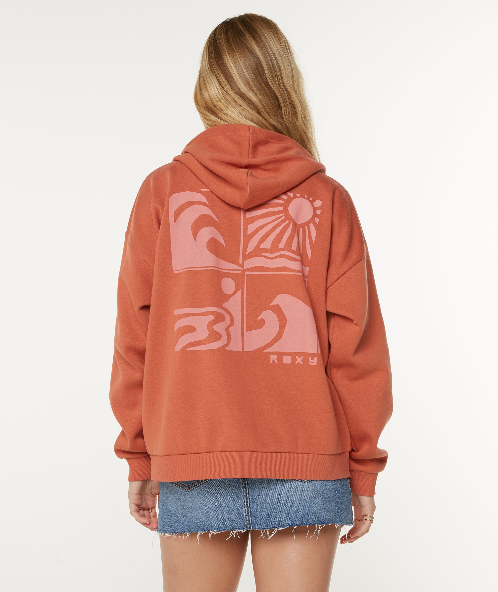 The Evening line up is everything your wardrobe needs for a comfy post-beach outfit. This zip front hoodie features an oversized fit and drop shoulders, perfect for unwinding after a sunny day.