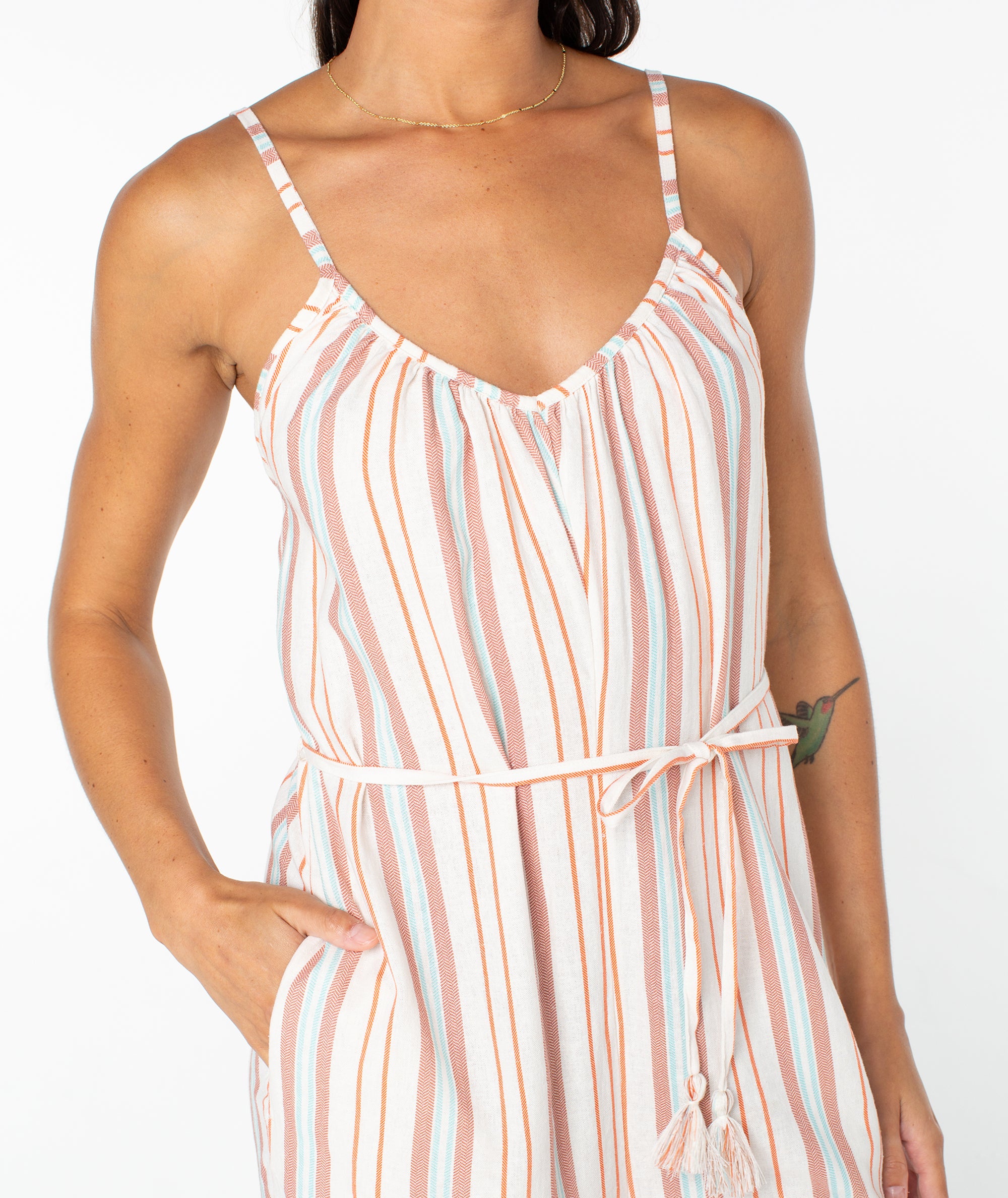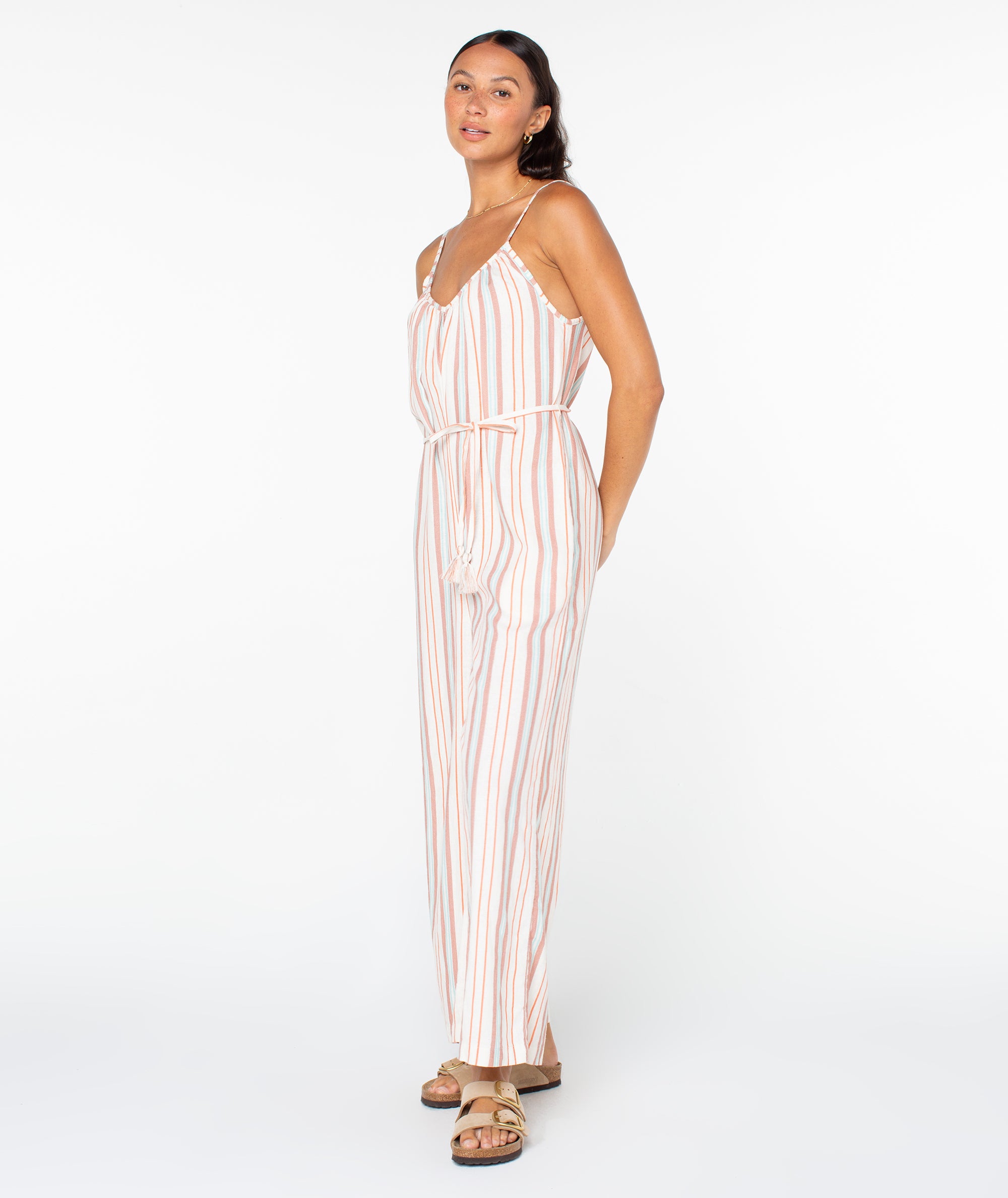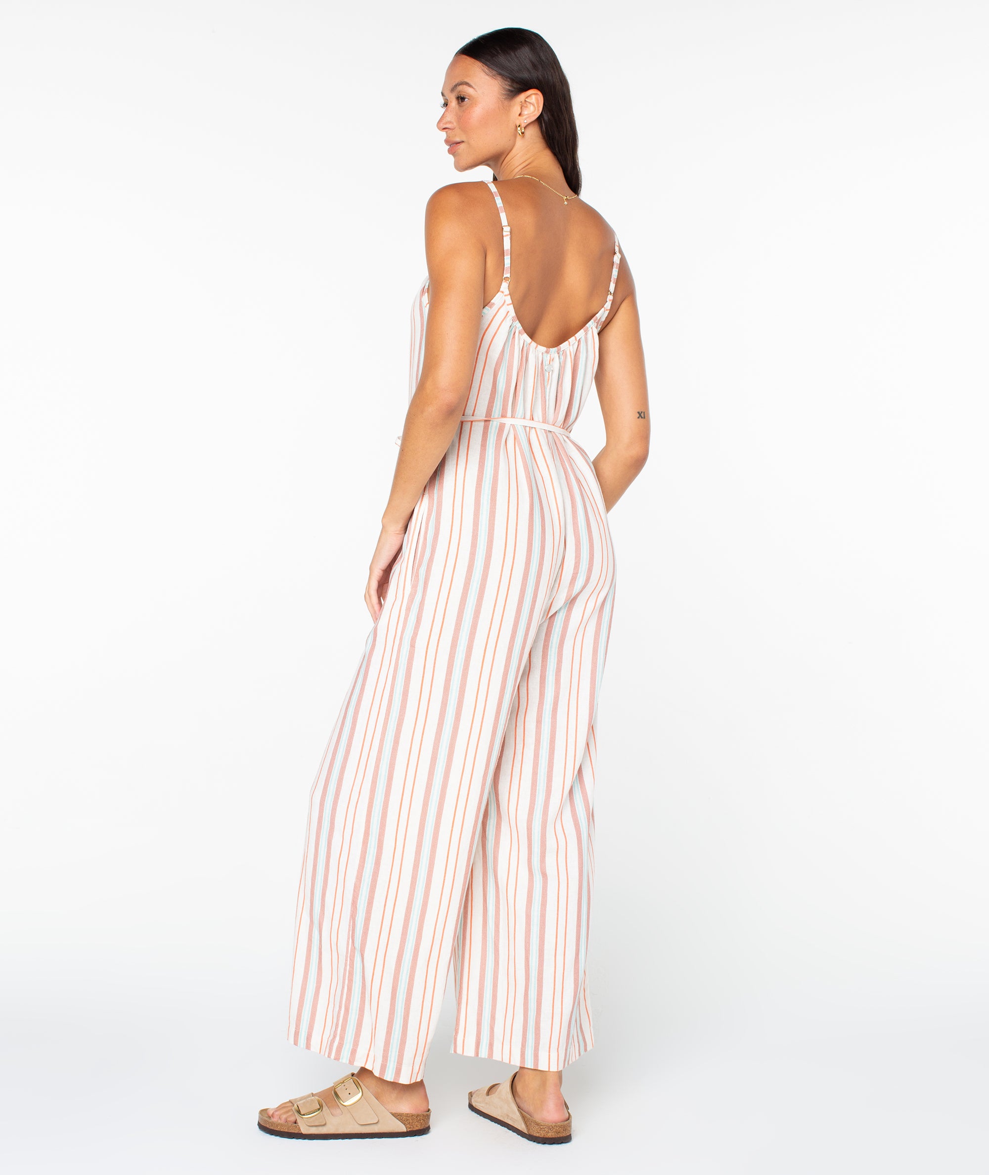 Function and fashion meet with the Gale jumpsuit, featuring a tie waist and a wide leg. Crafted from a linen blend fabric, this piece is a perfect spring closet staple.