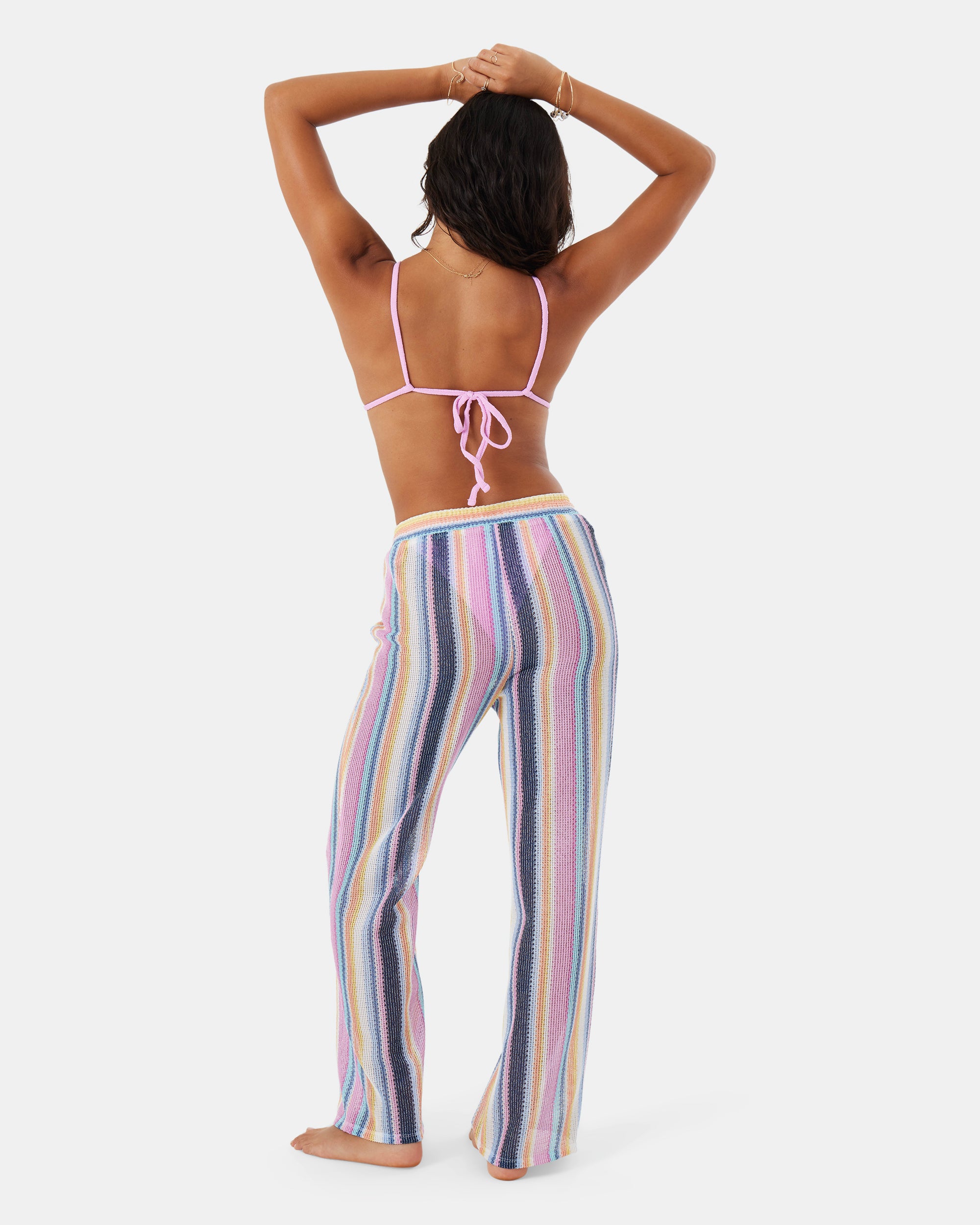 Cozy up in the Mood Moving Beach Pant. Crafted with a crochet feel, drawcord closure, and relaxed fit, these pants are perfect for lounging by the beach or strolling along the shore.